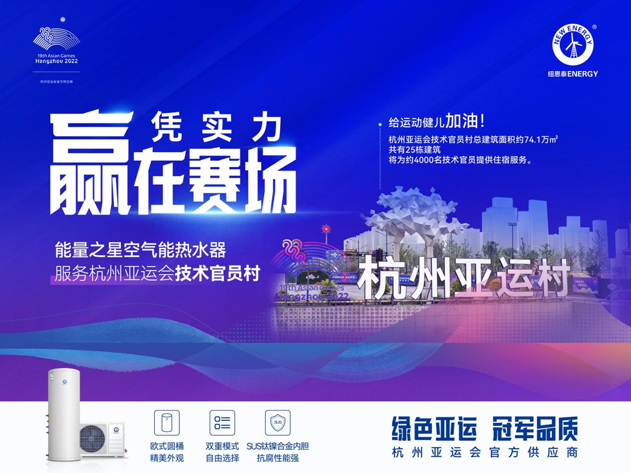 杭州亚运会亚运村开村啦!纽恩泰空气能商用家用空气能热水设备扬帆上场!