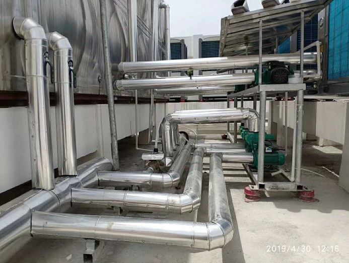 据该项目的负责人曾总介绍,颐养中心实际采暖面积约为6000平米,大楼外墙都安装了保温层。项目采用了6台52P的超低温冷暖机,末端为风机盘管。为保证冬季采暖的运行效果,所有管道都做了保温。