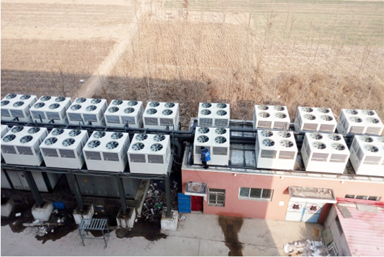 以河北成安利民家园小区采暖工程为例,该小区属于老区改造,共11栋7层住宅楼,建筑面积9万平米,供暖面积(不含一楼车库)7.7万平米。2017年的时候,物业为了响应国家清洁环保的政策要求,放弃了原来的水源热泵,改用纽恩泰低温空气能热泵为小区供暖。