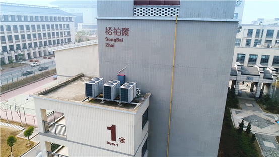 比如在学校热水方面,为了保证校内有高品质的热水供应,给师生们提供一个舒适安全的热水环境,同时也是为了响应国家绿色环保的号召,校方在2019年时,放弃了原来的热水设备,改用纽恩泰空气能热泵为学校提供热水。空气能热泵是一种通过少量电,驱动热泵运行,吸收空气中的免费能量来制热的设备。工作时不会使用燃气、煤、油等任何燃料,不会出现明火,也不会排放出任何可能对大气环境和人体健康造成伤害的气体或者物质,不仅清洁环保,而且没有消防、中毒隐患,符合国家绿色环保的号召。