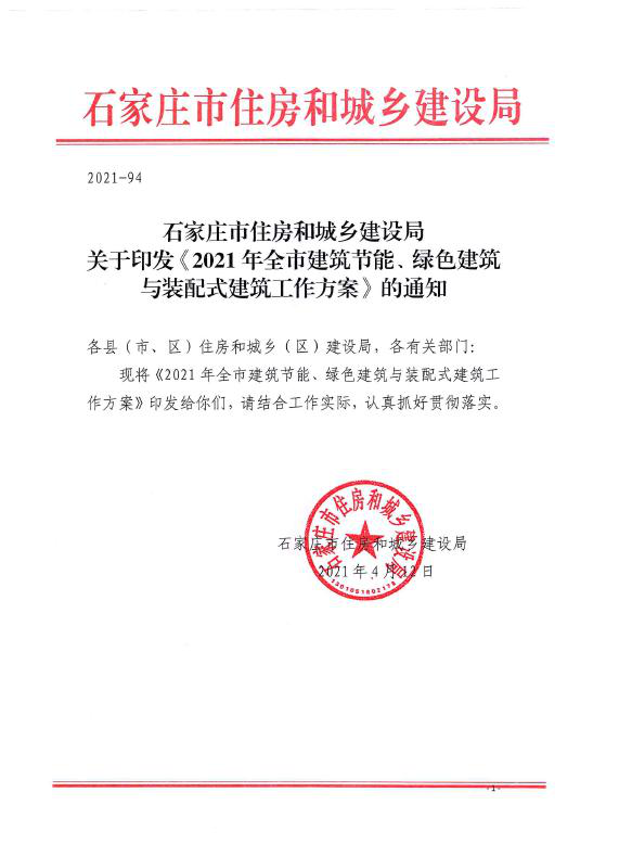 为响应国家号召,大力推动全市建筑节能、绿色建筑与装配式建筑工作,促进建筑业转型升级。日前,石家庄出台了《2021年全市建筑节能、绿色建筑与装配式建筑工作方案》(以下简称《方案》)。《方案》里提到,今年的工作目标为“城镇新建绿色建筑占新建建筑面积比例达到90%以上;新开工建设被动式超低能耗建筑面积20万平方米以上;新开工建设装配式建筑面积占城镇新建建筑面积比例达到25%以上。”