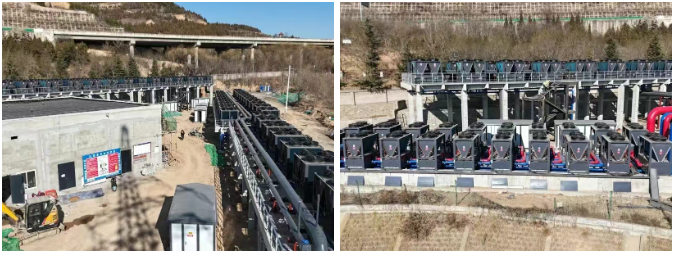 该项目采用闭式一次串并联与辅助供暖相结合的设计方案。系统配置以80台120P御寒系列机组为核心,分为两组运行并搭配变频水泵,实现按需调节,部分负荷下流量可降低至60%,节能效果显著。同时,20台超低温变频高温复叠热泵机组作为辅助热源,仅在极端严寒天气启动,其80℃的高出水温度完美匹配高温末端需求,且平时不运行,兼顾了效率与经济性。
