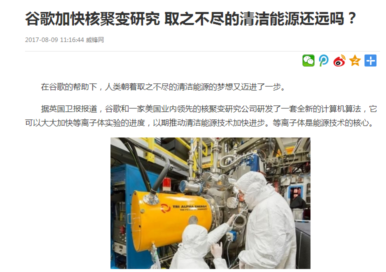 最新消息,著名科技企业谷歌表示,正在与美国一家核聚变研究公司,合作开发一套全新的计算机算法,以此推动清洁能源技术的进步,让取之不尽用之不竭的清洁能源距离我们越来越近。