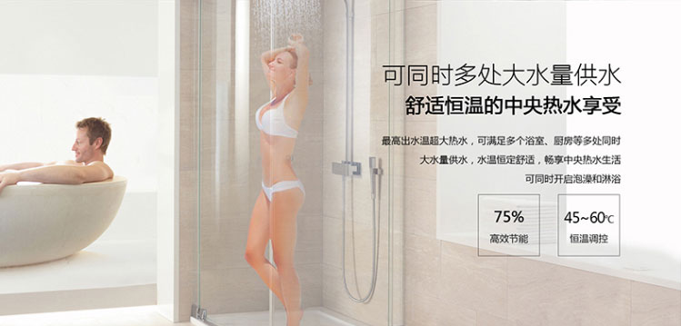 空气能热水器,是继太阳能热水器之后的第四代热水器。它采用了与前几代传统设备截然不同的制热原理,利用物理上的“逆卡诺原理”来制热水。这种制热方式的核心原理,就是从空气中搬运“免费”的热能,然后将热能释放进入水中,产生热水。全过程,几乎只有压缩机耗电,所以,空气能热水器制热效率相当高。在市场中常见的空气能热水器中,就拿纽恩泰家用机系列来说,制热能效比COP可达4.0。消耗1kw电能,可以获取4kw的热能。比常规的电热水器节能75%。