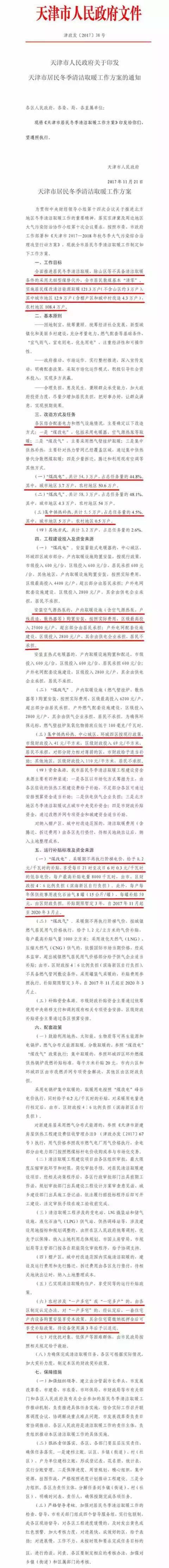 《天津市居民冬季清洁取暖工作方案》《天津市冬季清洁取暖试点城市中央财政奖补资金分配方案》原文如下: