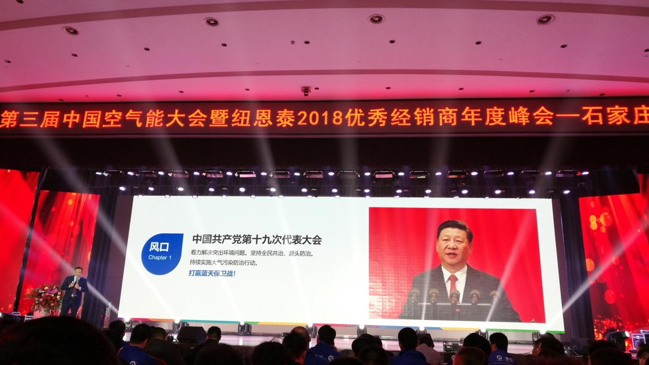 1月16日上午,河北石家庄凯旋门大酒店彩旗飘扬,人头攒动。原来我国知名空气能企业纽恩泰正在此地举行一年一度的优秀经销商峰会,同时也是第三届中国空气能大会。活动现场,行业大咖、空气能技术专家、行业协会领导、营销专家、经销商等近三千人齐聚一堂,共同分享和探讨2018年空气能行业发展政策和技术趋势,为企业来年的发展提供有益的帮助。