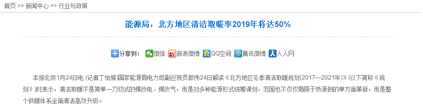 1月24日,国家能源局召开新闻发布会,多方的负责人共聚一堂,针对清洁采暖一事进行了分析讨论。能源局采暖负责人表示:推进清洁采暖,关系北方地区广大群众是否能否温暖过冬,更关系雾霾天能否减少,是与能源生产、消费革命、农村生活方式相关的一项重要民生大计。而《北方地区冬季清洁取暖规划(2017-2021年)》(以下简称《规划》)的公布,为清洁采暖改造工作明确了方向。