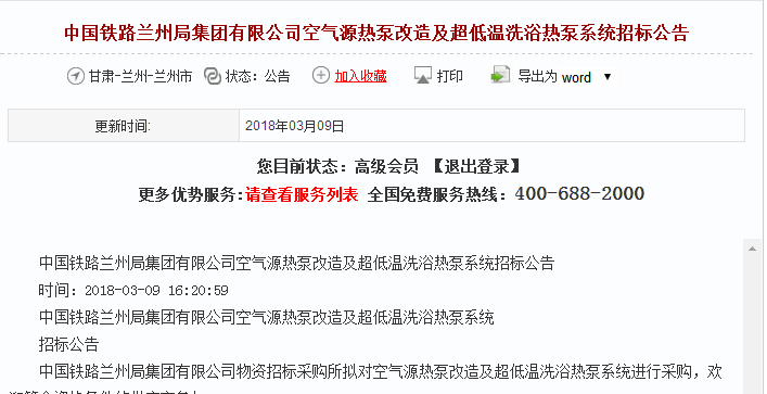 中国铁路兰州局集团有限公司空气源热泵改造及超低温洗浴热泵系统招标公告