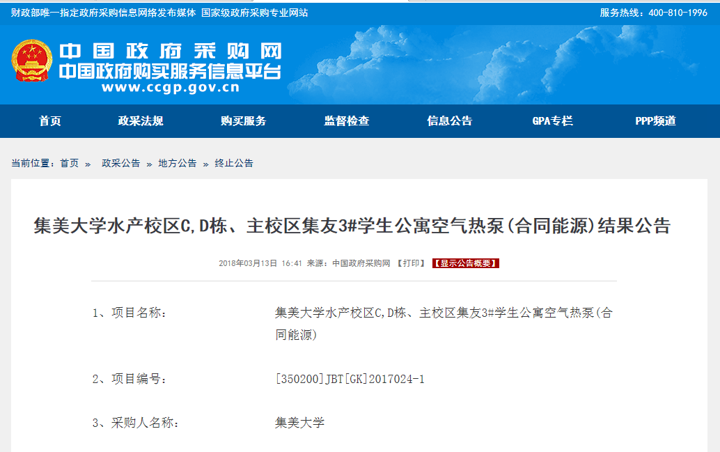 集美大学水产校区C,D栋、主校区集友3#学生公寓空气热泵(合同能源) |