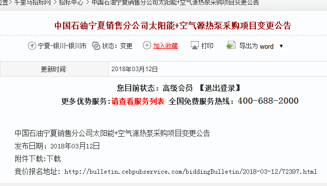 中国石油宁夏销售分公司太阳能+空气源热泵采购项目变更公告