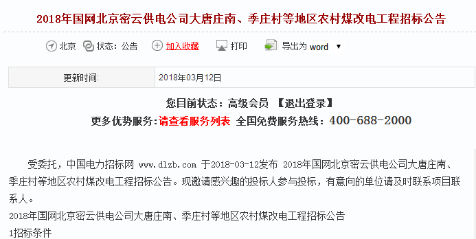 国网北京密云供电公司农村煤改电工程招标公告