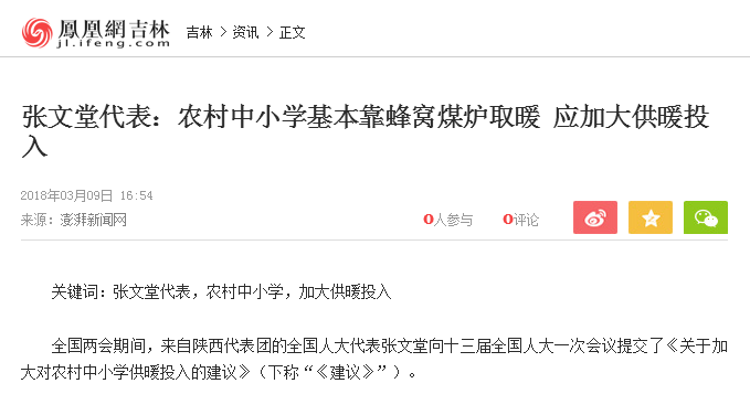 “两会”持续进行中,各地人大代表齐聚北京,为国家的各行各业发展出谋划策。而采暖作为这几年北方百姓最为关注的话题,也传出了新消息。据悉,近日,陕西代表团的全国人大代表张文堂向十三届全国人大一次会议提交了《关于加大对农村中小学供暖投入的建议》(下称“《建议》”)。