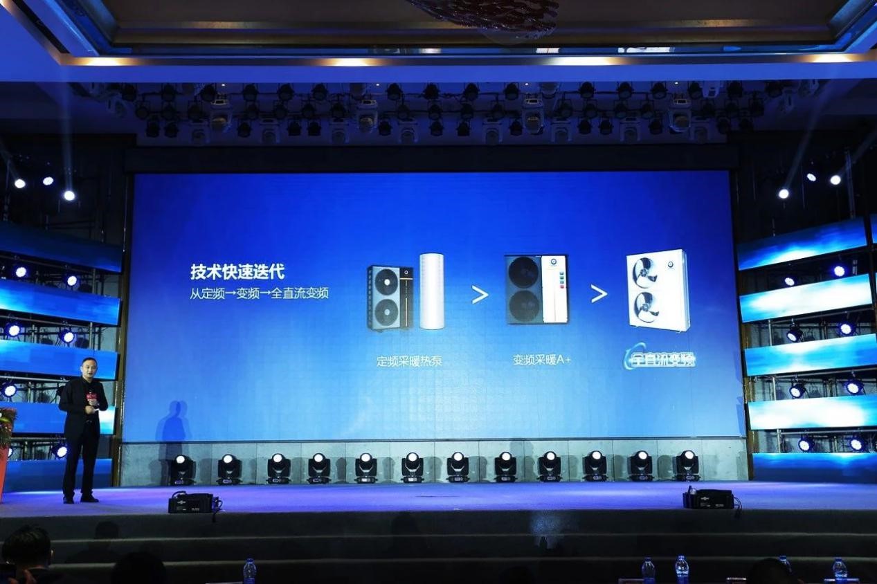 本次新品发布会,纽恩泰可以说是诚意满满,董事长赵密升亲自上台,向在场经销商介绍了三款纽恩泰2018年变频空气能新品。