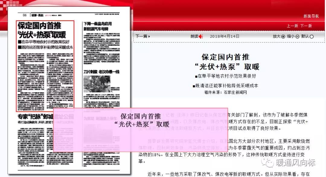 河北煤改电 保定国内首推 “光伏+热泵”取暖