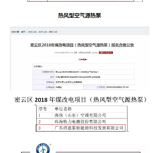 2018北京密云区煤改电项目,纽恩泰榜上有名