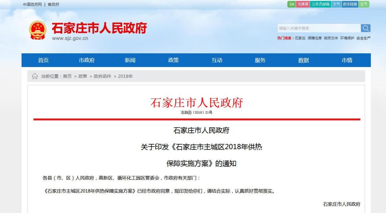 《石家庄市2018年农村地区冬季清洁取暖工作实施方案》已经市政府研究同意,现印发给你们,请认真贯彻执行。